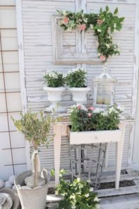 Entrando ancora di più nel dettaglio delle scelte cromatiche nei mobili del giardino provenzale, alcune soluzioni molto frequenti sono il bianco antico, il grigio.