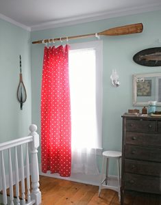 Ecco un’idea super divertente per creare un look sorprendente utilizzando solo una corda pesante e gangi per l’asta da tende e il panno di tela come tende. Per un tema nautico usa una tela a strisce bianche e blu o semplicemente bianco con motivi nautici.